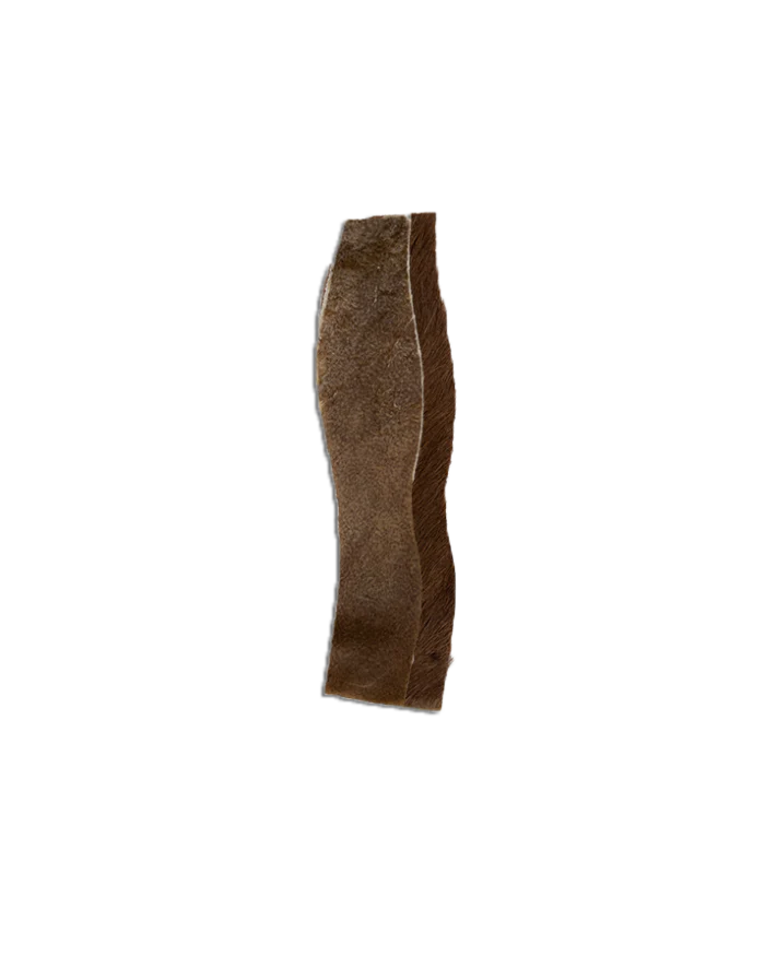 Njords nötstrips är ett naturligt tuggben, tillverkat för hand av svensk kohud från lokala gårdar. Tugget kladdar mindre och håller längre eftersom hela huden, inklusive den exklusiva narvhuden, används. Genom att dessutom behålla håren kan vi helt och hållet utesluta kemikalier från tillverkningsprocessen. Håren bidrar med extra god smak och fibrer.