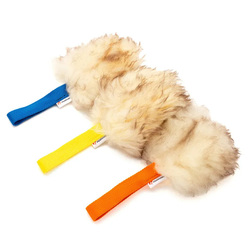 Trainer är en träningsleksak tillverkad av naturligt fårskinn med ett styvt, insytt band. Leksaken är ca 25 cm lång och pälslängden är ca 10 cm. Perfekt för lek och träning som utvecklar hundens greppförmåga och stärker samarbete mellan hund och ägare.